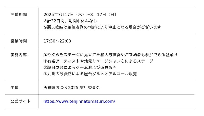 - 「鷹祭 SUMMER BOOST meets 天神夏まつり2025」開催決定!豪華ゲストも福岡の街中に!