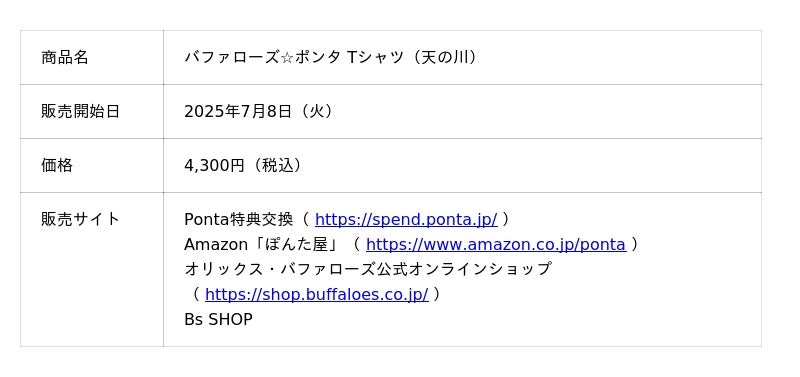 ~新グッズ「バファローズ☆ポンタ Tシャツ(天の川)」を販売開始~