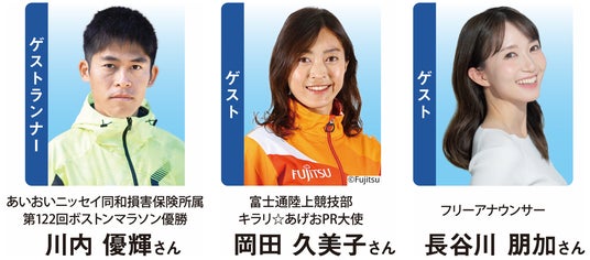 昨年同様、ゲストランナーとして元埼玉県職員でプロランナーの川内優輝選手(あいおいニッセイ同和損保)、さらにゲストとして35km競歩などの日本記録保持者でパリ五輪 女子競歩出場「キラリ☆あげおPR大使」の岡田久美子選手(富士通)=上尾市出身=、“日本一走るアナウンサー”と呼ばれランニングマイスターでもある長谷川朋加さんを迎えて開催いたします。トップランナーの走りを間近で体感することができる本大会に、ぜひご応募ください。