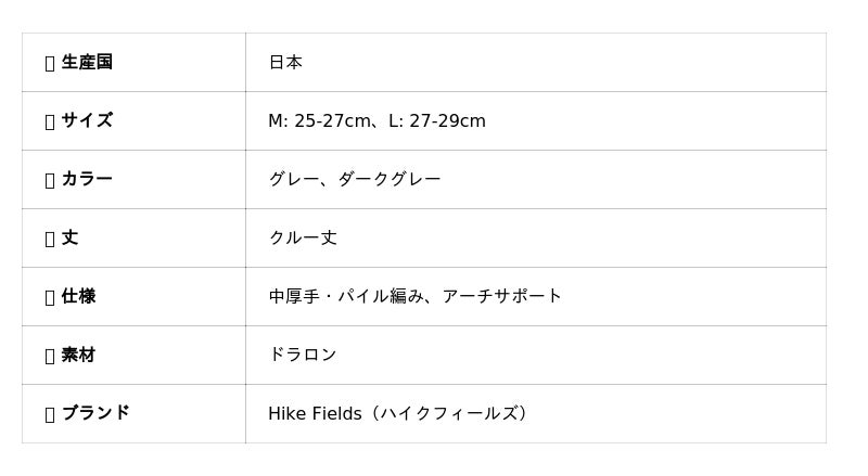Hike Fieldsの靴擦れ防止トレッキングソックス(グレー)