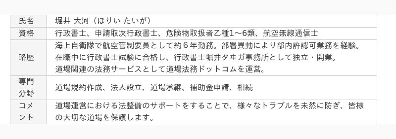 - 武道道場専門の「道場コンサルタント」が行政書士やファイナンシャルプランナー監修の道場運営コラムを発行開始