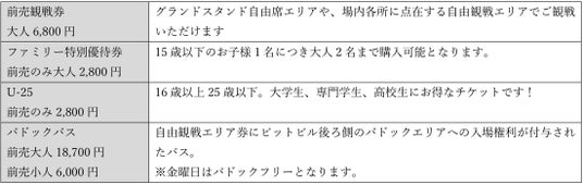 ・U-25(16歳から25歳のモータースポーツファン応援チケット)、他