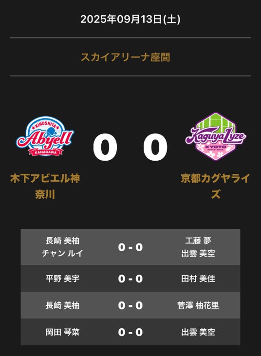 - ノジマTリーグ 2025-2026シーズン 公式戦 9月13日開催 木下アビエル神奈川 vs 京都カグヤライズ 対戦オーダー発表