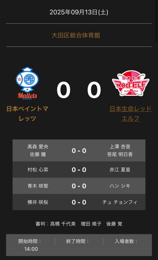 - ノジマTリーグ 2025-2026シーズン 公式戦 9月13日開催 日本ペイントマレッツ vs 日本生命レッドエルフ 対戦オーダー発表