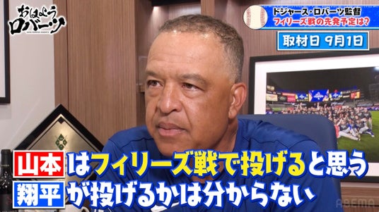 新しい未来のテレビ「ABEMA(アベマ)」は、大谷翔平、ベッツ、フリーマンをはじめ、多くのスター選手が所属するロサンゼルス・ドジャースを率いて昨シーズンのワールドチャンピオンに導いた名将、デーブ・ロバーツ氏への「ABEMA」独占のインタビュー企画『おはようロバーツ』を、2025年9月15日(月)朝8時より放送いたしました。