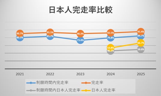 新コース移行後のデータを集計、制限時間内完走率は近年最高値の84.7%、日本人出場者の数値は50%と全体に比べ低い結果に