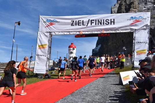 最終完走者の平均タイムは7時間29分57秒で、過去5年の最短値が2022年の7時間17分9秒、最長値が2023年の7時間45分37秒。公式サイト(引用:https://www.jungfrau-marathon.ch/en/Course.html)記載の文言を日本語訳すると「ウィクシ分岐(38.5km)、走行時間5時間50分後コースは14時25分(現地時間午後2時25分)に38.5kmで閉鎖されます。閉鎖時間後にこれらのチェックポイントを通過したランナーは、レースを続行できません。」とあるため、最終の関門を通過していればゴール時間がある程度許容されるのではないかと考えられます。