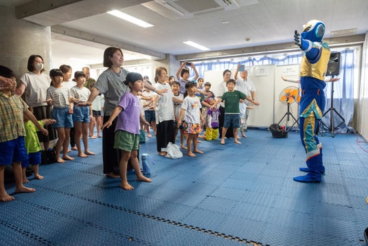 スイクンマンと一緒に「ウイテマテ」のダンスもしました