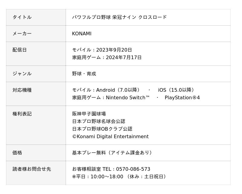 株式会社コナミデジタルエンタテインメントは、モバイルゲーム『パワフルプロ野球 栄冠ナイン クロスロード』(以下、『パワプロ 栄冠クロス』)が2025年9月20日(土)に配信2周年を迎えることをお知らせします。