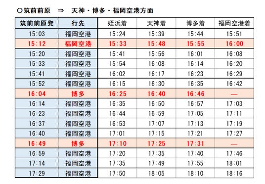 JR 筑肥線・地下鉄空港線 ※赤字で示しているものが臨時列車