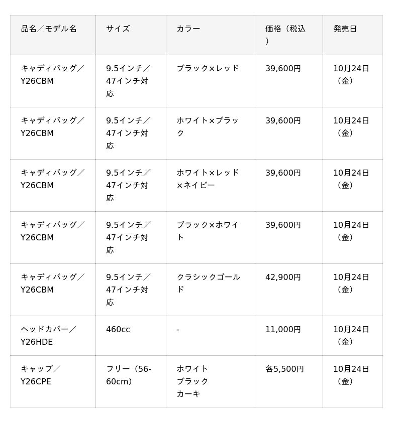 - 使いやすさとデザイン性を重視したゴルフアクセサリーを発売 ヤマハ キャディバッグ『Y26CBM』、ヘッドカバー『Y26HDE』、キャップ『Y26CPE』
