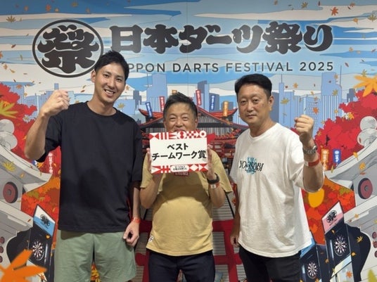 ダーツでは珍しいトリオスという3人1チーム制を取り入れた本大会。チーム戦という形式を活かし、企業色豊かなユニフォームで他チームとの差を見せつけたチームへ送られる「ベストユニフォーム賞」、試合中でも仲良く応援し合い、チーム全体の士気を高めたチームへ送られる「ベストチームワーク賞」といった特別賞もご用意。各社企業名を背負いながら、全力で楽しまれている姿が印象的でした。