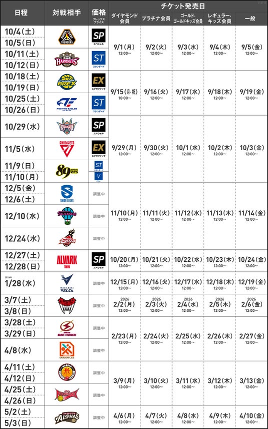 - 10/29(水)~11/10(月) ホームゲームチケット価格決定のお知らせ