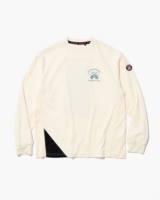 ●ドライロングスリーブTシャツ 4,999円(税込)クラシックな「BEAMS DESIGN RACKET CLUB」グラフィックが特徴のロングTシャツ。吸汗・速乾性に優れ、フロント右下裾にはサングラスが拭ける生地を切り替えにして装備しており、デザインだけでなく実用性にもこだわった仕様です。