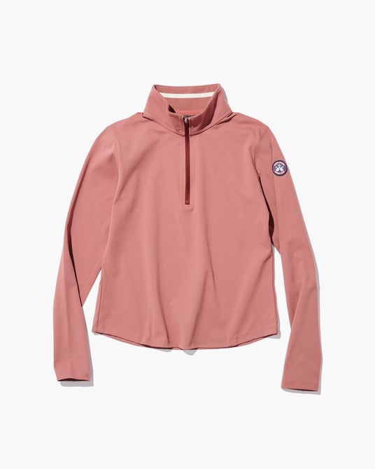 ●ハーフジップロングTシャツ(レディース) 5,999円(税込)UVカット仕様のジャージ素材。スタンドカラーの内側はラインリブ仕様で、ジップを開けて着るのもおすすめ。スリムフィットですっきりと着られます。