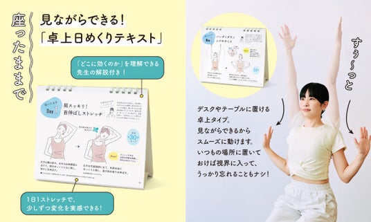 プロ監修の簡単ストレッチ! 卓上テキストで座ったままできるから、家でもオフィスでもOK