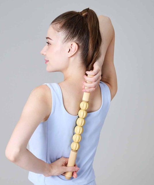 凹凸のある6つのローラーが、筋肉をコロコロ刺激して、全身のコリやむくみをすっきり取るスティックローラーです。
