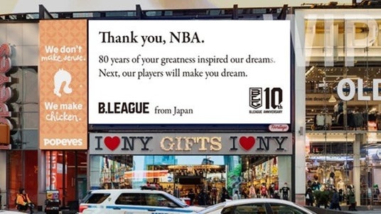 - B.LEAGUE史上初・史上最多の感謝広告を9月29日より渋谷センター街、全国41都道府県、NYタイムズスクエアの計150箇所に掲出