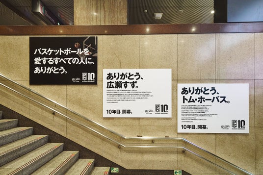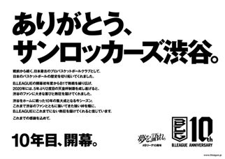 公益社団法人ジャパン・プロフェッショナル・バスケットボールリーグ(東京都文京区、チェアマン:島田慎二 以下「B.LEAGUE」)は、B.LEAGUE開幕10周年の感謝を込めて、9月29日(月)より渋谷センター街、全国41都道府県および米国・ニューヨークのタイムズスクエアにて、100種類の異なるメッセージ広告を、150箇所へ掲出することをお知らせします。