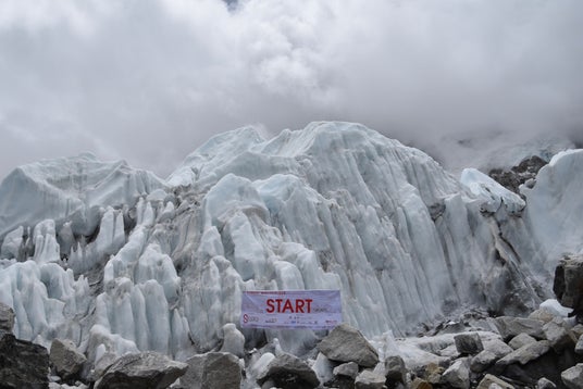 標高約5,400mのエベレストマラソンスタート地点の氷河