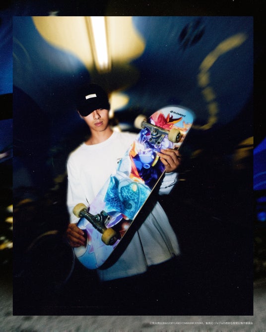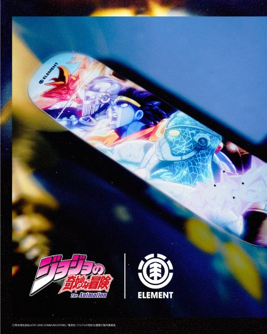 「ELEMENT SKATEABORDS(エレメントスケートボード)」が、アニメ「ジョジョの奇妙な冒険 スターダストクルセイダース」とのコラボレーションを発表。本日9月30日より10月14日の23時までの期間限定で特別モデルの予約販売を開始した。スケートボードの種類は全8種。価格は1万4960円(税込)で、ELEMENTオフィシャルオンラインストアで受け付けており、商品の発売は2025年12月下旬頃を予定している。