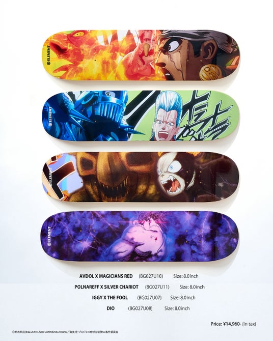 - アニメ『ジョジョの奇妙な冒険』と ELEMENT SKATEBOARDS によるコラボレーション