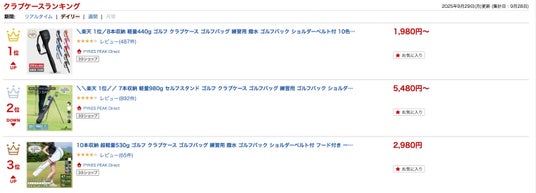 PYKES PEAK(パイクスピーク)が展開するゴルフクラブケースが、楽天市場デイリーランキング(クラブケース部門)において、1位から3位までを独占しました。(集計日:2025年9月28日)