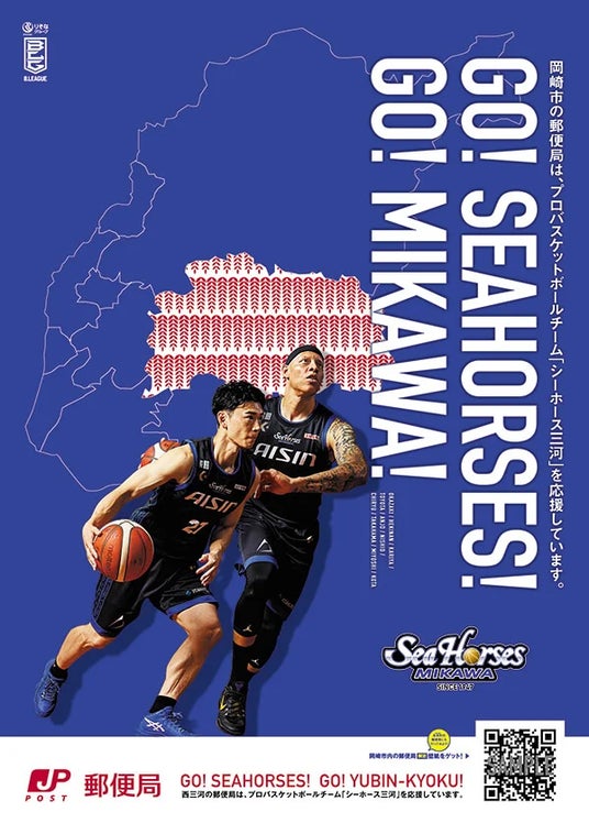 このたび、日本郵便株式会社東海支社のご協力のもと、2025-26シーズン においても西三河地区 全郵便局(143局)でシーホース三河オリジナル青援ポスターを掲出することが決まりました。