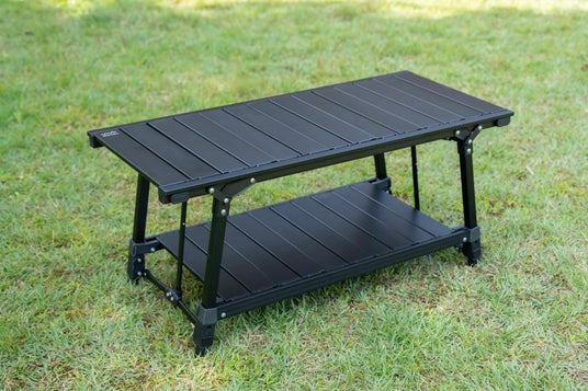 ・「アルミユニットテーブル88」と2段組にした「軽量1.5kgアウトドアラック」も連結可能