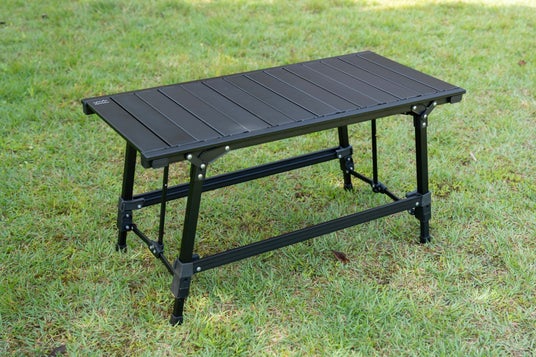 「アルミユニットテーブル」は、「Alpen Outdoors」を代表する人気アイテムです。8枚の着脱式天板を備え、好みの位置にコンロやバーナーをセットできるのが最大の特長で、同規格なら他ブランドのアイテムも組み込み可能。拡張パーツを組み合わせれば、スタイルに合わせて自由なカスタマイズを楽しめます。さらに、軽量で組み立てやすく、4本の脚それぞれで高さ調整ができるなど、細部まで配慮した機能性も備えながら、手に取りやすい価格を実現している点も、多くのお客様に選ばれている理由のひとつです。現在は「アルミユニットテーブル88」「アルミユニットテーブル110」の2サイズを展開しています。