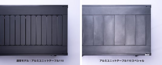 今回登場する「アルミユニットテーブル110スペシャル」は、その機能性と拡張性を継承しながら、シリアルナンバー入り500台限定で展開する特別モデルです。