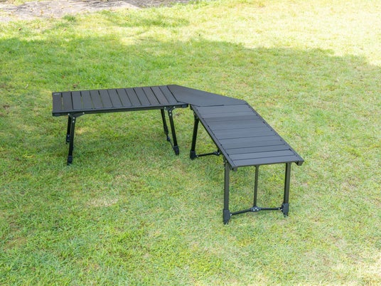 「アルミコーナー天板88」は、アルミユニットテーブル同士をより柔軟にレイアウトできる拡張アイテムです。テーブルの連結やラックとの組み合わせにより、キャンプサイトの使い勝手をさらに高めます。