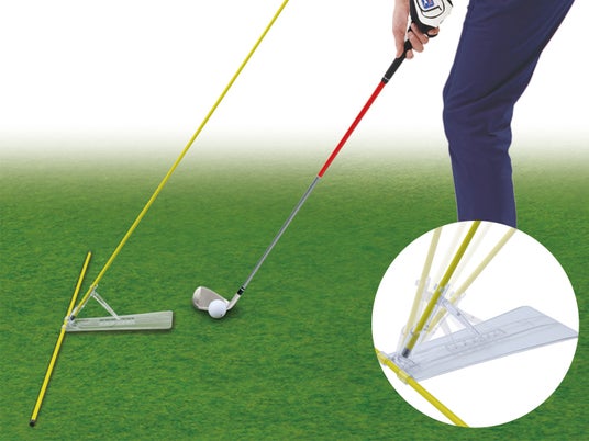 アライメントスティックと組み合わせて使うスイング練習器具。7段階で調整できるアームにより理想のライ角を確認可能。さらに腰横にスティックを設置することで、体重移動時のスウェー防止にも役立ちます。セルフチェックしながら安定したスイングを身につけられます。