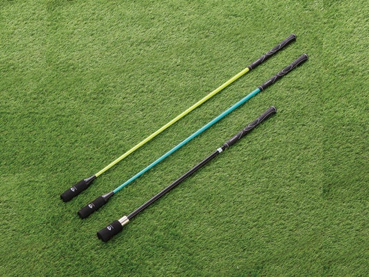 ラウンド前や練習前のウォーミングアップや飛距離アップに効果的な練習器具。お手持ちのゴルフクラブに近いイメージで素振りができる長尺の45インチ・43インチと、限られたスペースでも扱いやすく、自宅でのスイング練習が日常に取り入れやすい全長80cmの短尺仕様の展開です。