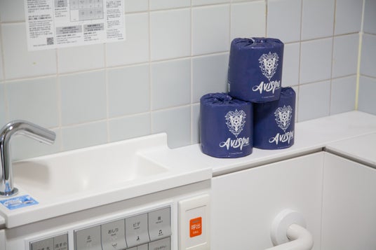 スタジアム内に設置されたクラブカラー(ネイビー)のオリジナルトイレットペーパー