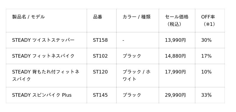 2018年のブランド展開開始から、SNSやカスタマーサポートで既存製品に対するお客様の声を拾い上げ、日本人の体格や考え方、住環境、ライフスタイルに配慮したホームフィットネス / ストレッチ製品を提案し、日本においてトップクラスのEC販売実績を誇る ステディジャパン株式会社(本社:東京都新宿区、代表取締役CEO:森由樹)は、総合オンラインストアAmazon.co.jp(以下、Amazon)にて2025年10月4日(土)0:00~10月10日(金)23:59の7日間にわたって開催される「Amazon プライム感謝祭」および先行セールにおいて、100以上のSTEADY / RELANESS製品を最大40%OFFにて販売します。