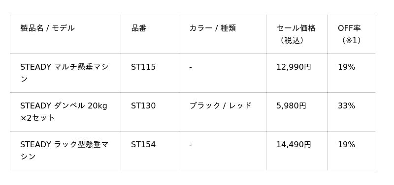 Amazonにて2025年10月7日(火)0:00から10月10日(金)23:59にかけて開催される「Amazonプライム感謝祭」および2025年10月4日(土)0:00から10月6日(月)23:59にかけて開催される先行セールにて、100以上のホームフィットネス / ストレッチ製品を最大約40%OFFで販売。今秋に踏み出した一歩で“なりたい自分”を引き寄せたい方に贈る、STEADYからのビッグエールです。