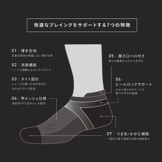 06 かかとのヒールロックサポートが靴下のずれを軽減