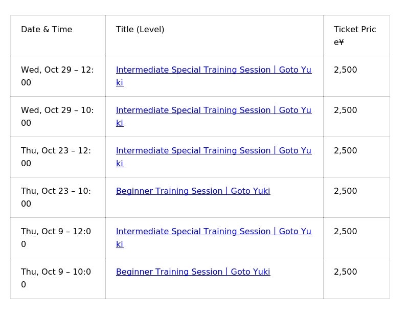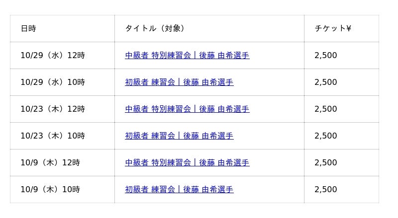 【リリース概要|後藤 由希 選手による 初級・中級 練習会】