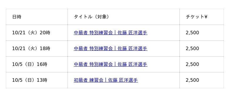 【リリース概要|佐藤 匠洋 選手による 初級・中級 練習会】