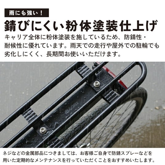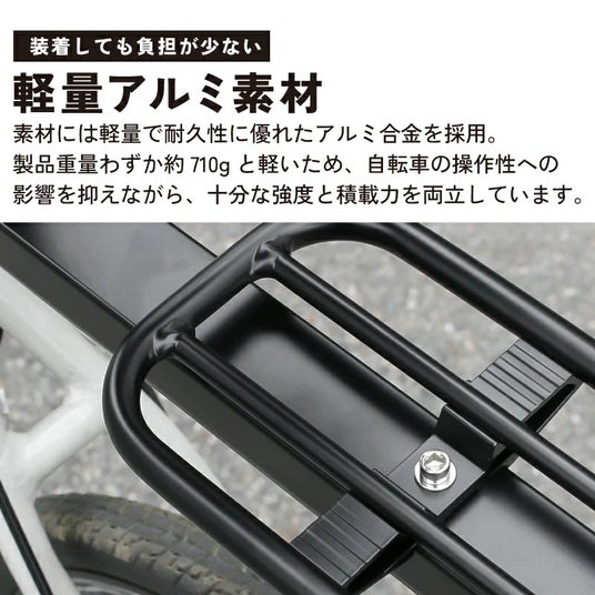 自転車の操作性への影響を抑えながら、十分な強度と積載力を両立しています。