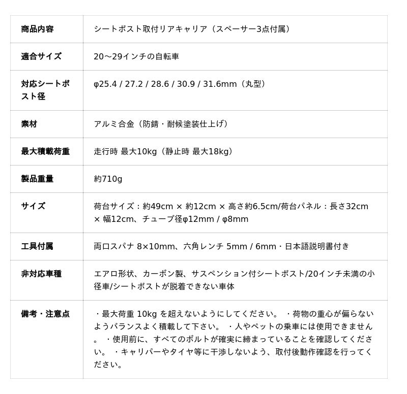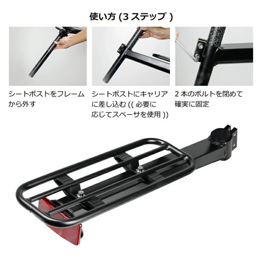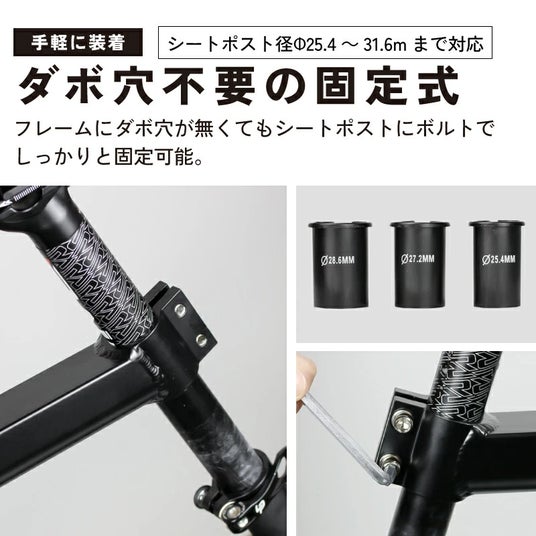●ダボ穴不要:シートポスト固定式で幅広い自転車に対応