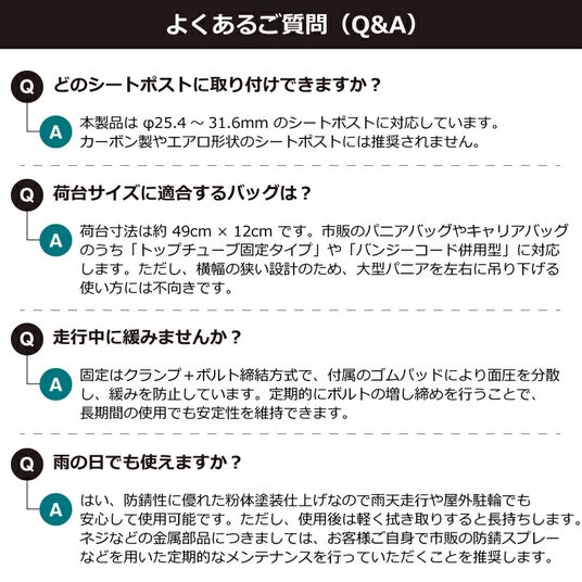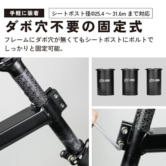●ダボ穴不要:シートポスト固定で多様な自転車に装着可能