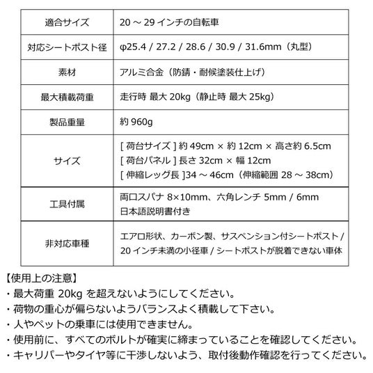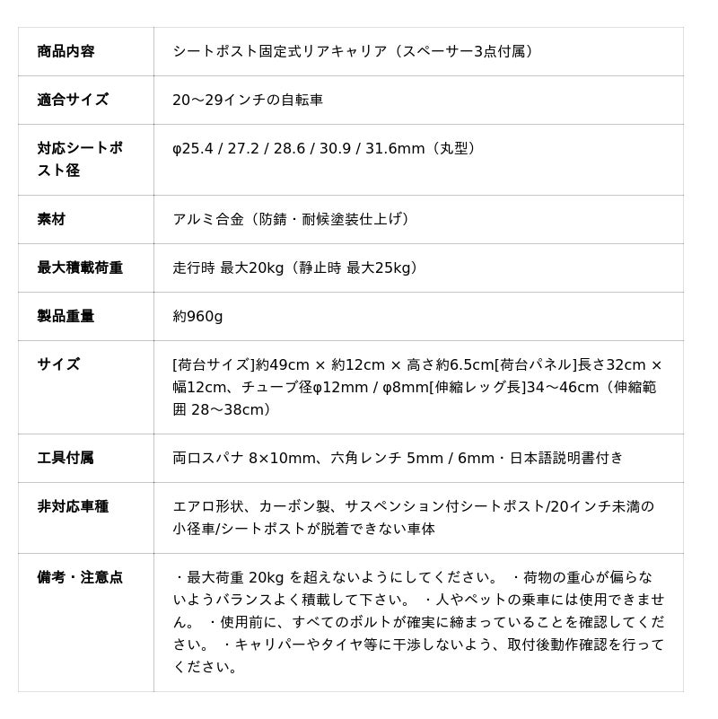 商品名:GORIX シートポスト固定式リアキャリア(GRL349)