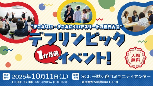 2025年11月に東京で初開催される「第25回夏季デフリンピック競技大会」を前に、渋谷区では大会約1か月前の10月11日(土)に、SCC千駄ヶ谷コミュニティセンターを会場にした、記念イベントを開催いたします。