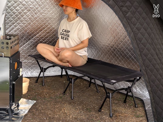 本格的なスペックと扱いやすさを両立させた本気のテントサウナセット「ウササウナナウ」。最大収容人数4人のドーム型テントと、省スペースで設置できる縦型ストーブを含め、これ一つあればすぐにテントサウナを楽しめるオールインワンセットです。キャンプ用品メーカーとしてのノウハウを活かし、冬の気温でも100℃に達する本格的なサウナ機能と、気軽にトライできる扱いやすさを両立したテントサウナセットとなっています。