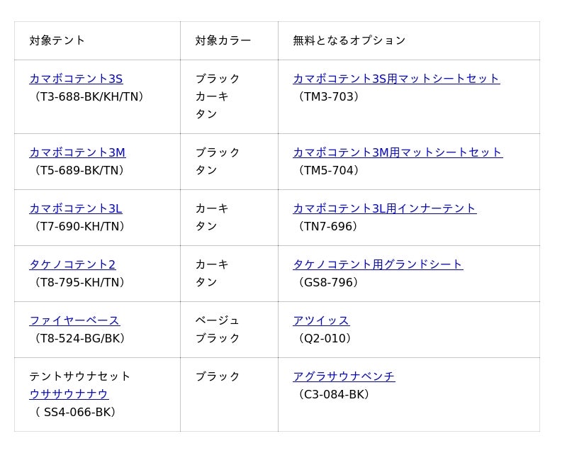 - 【テント購入でオプションが無料に!】秋のキャンプシーズンに向けた『テントの日』キャンペーンを開催