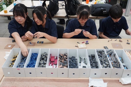 新渡戸文化学園の中学生ラボの探究メンバーは、探究学習で「身近にある環境問題をどのように解決するか」をテーマに、解決策を探っています。2024年9月、バタフライの研究開発および製造拠点、「バタフライ・テック」を訪れた際に知った余材に新たな価値と関係性を生み出すため、「Ping-pong Block Project」をスタートしました。プロジェクトでは、余材をパズルのように組み合わせてさまざまな作品が創造されています。