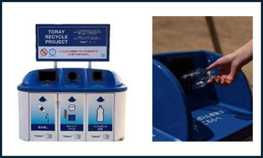 東レ株式会社のリサイクル繊維ブランド「&+(R)(アンドプラス)」と連携し、施設内に PET ボトルの回収ボックスを設置します。本施設内で回収されたPETボトルは、東レの技術で高品質な繊維にリサイクルされ、原料の一部として施設のスタッフウェア等への循環を実現します。