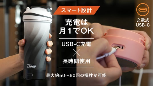 USB-C充電で約2時間のフル充電後、最大50~60回使用可能。